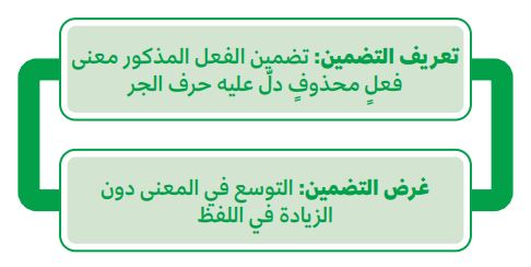 فإذا مررت على موضع للتضمين فتوقّف عنده وتعلّمه: ما هو الفعل المضمّن في الفعل المذكور مما يتفق مع حرف الجر ويناسب السياق؟ وماذا يصبح المعنى الواسع بناءً على ذلك؟ وكيف كان هذا التعبير أبلغَ من كلّ فعل لو ذكر منفردًا؟
